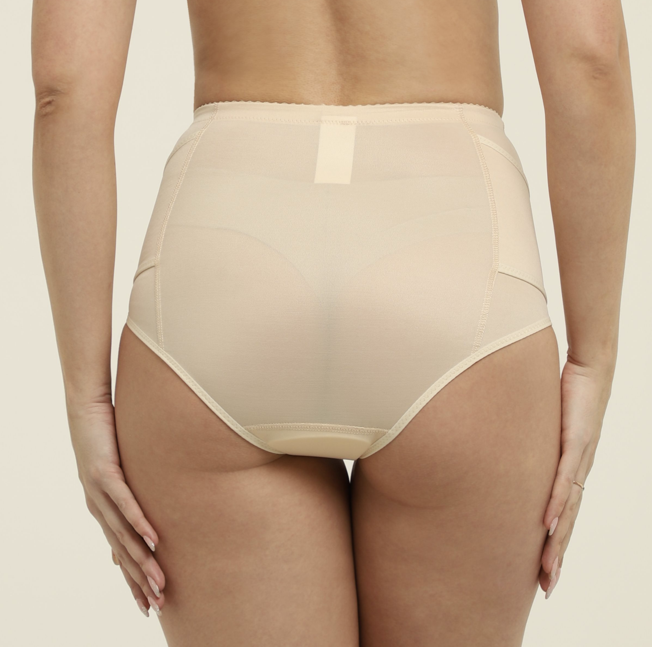 Бандаж телесного цвета выполнен в виде обычных трусов, поэтому практически незаметен под любой одеждой