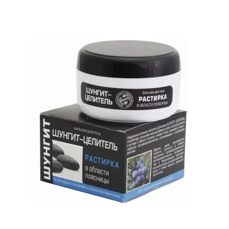 Бальзам для тела «Шунгит-Целитель», благодаря наличию в своем составе целого комплекса активных противовоспалительных, противоотечных, противоревматических, согревающих и болеутоляющих компонентов природного происхождения, рекомендуется в качестве эффективного вспомогательного средства при болях в области поясницы и суставах.