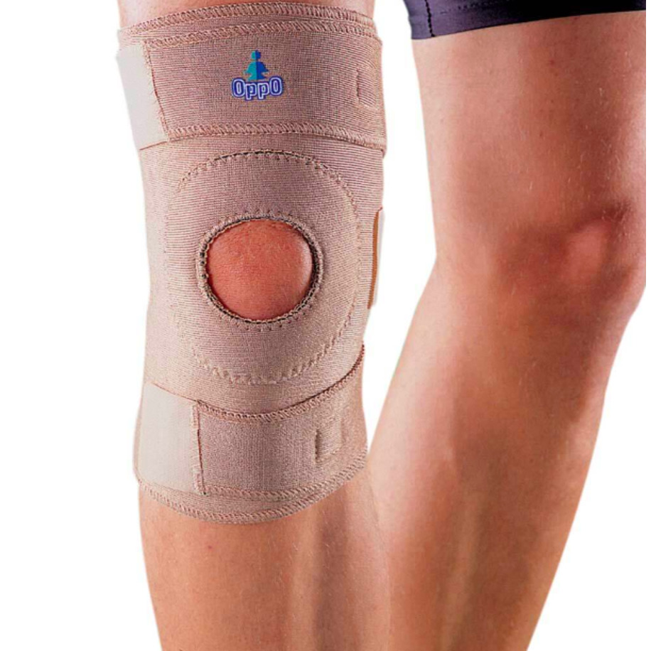 Уплотненное мягкое кольцо обеспечивает стабилизацию коленной чашечки, фиксирующие ленты позволяют регулировать степень давления, разъемная конструкция облегчает надевание изделия и позволяет регулировать по объему под индивидуальные особенности.