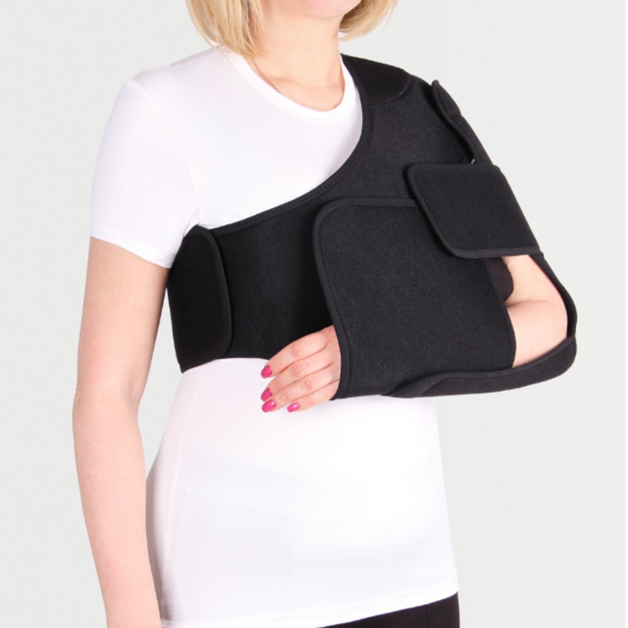 конструкция плотно фиксирует руку к туловищу, обездвиживает конечность в плечевом и локтевом суставах и позволяет добиться их полной разгрузки