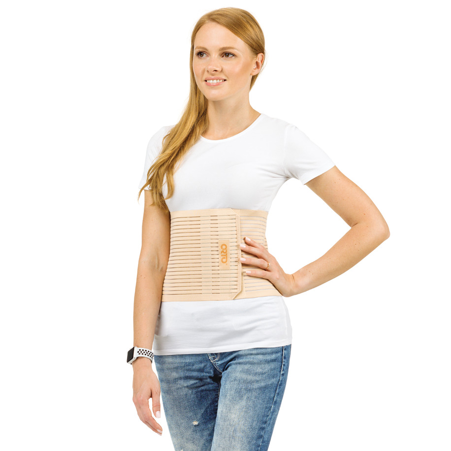 Уход за полостью ртаАбдоминальный ортез с разъемной основой из эластичного материала, форма которого адаптирована под женский тип фигуры (нижний объемный размер больше верхнего).