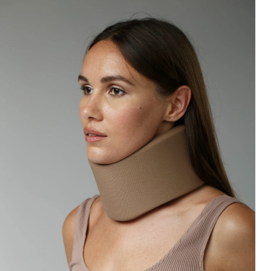 Головодержатель (воротник Шанца) с разъемной эластичной основой анатомической формы и вырезом для подбородка.
