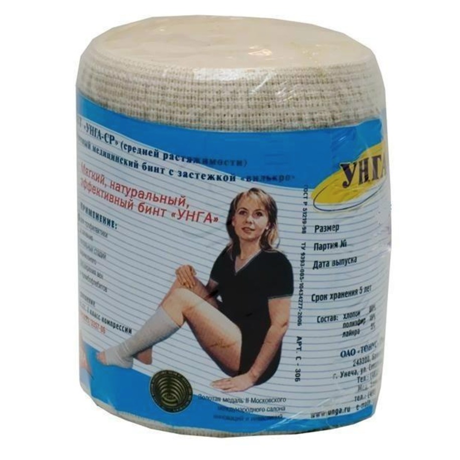Бинт эластичный медицинский средней растяжимости с застежкой велкро.