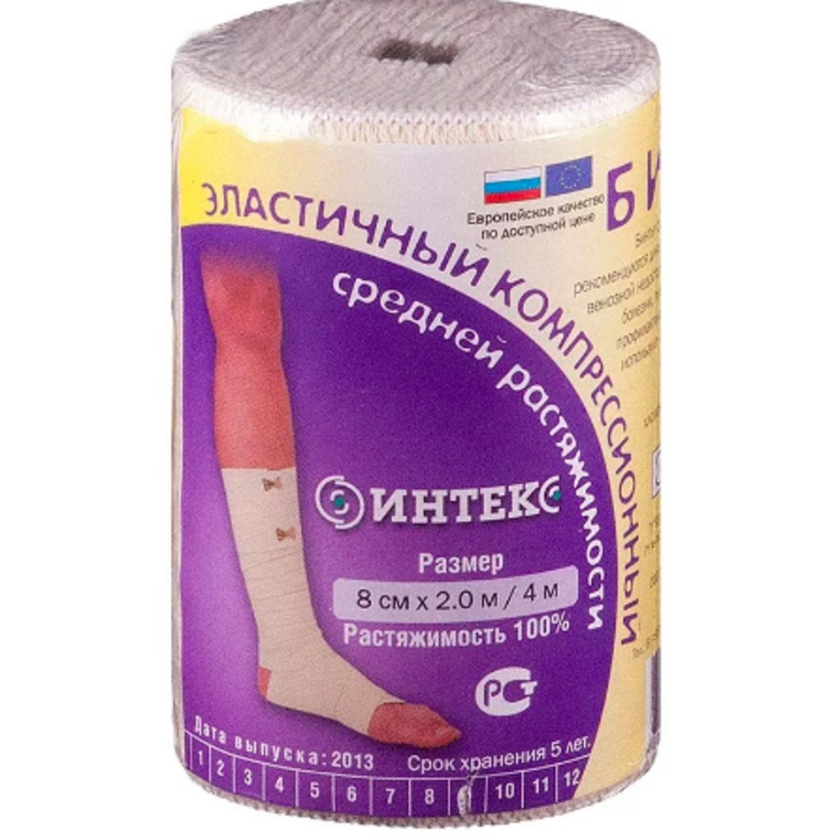 Бинт эластичный средней растяжимости Интекс оказывает компрессионное давление, сопоставимое с 2 и 3 степенью компрессии.