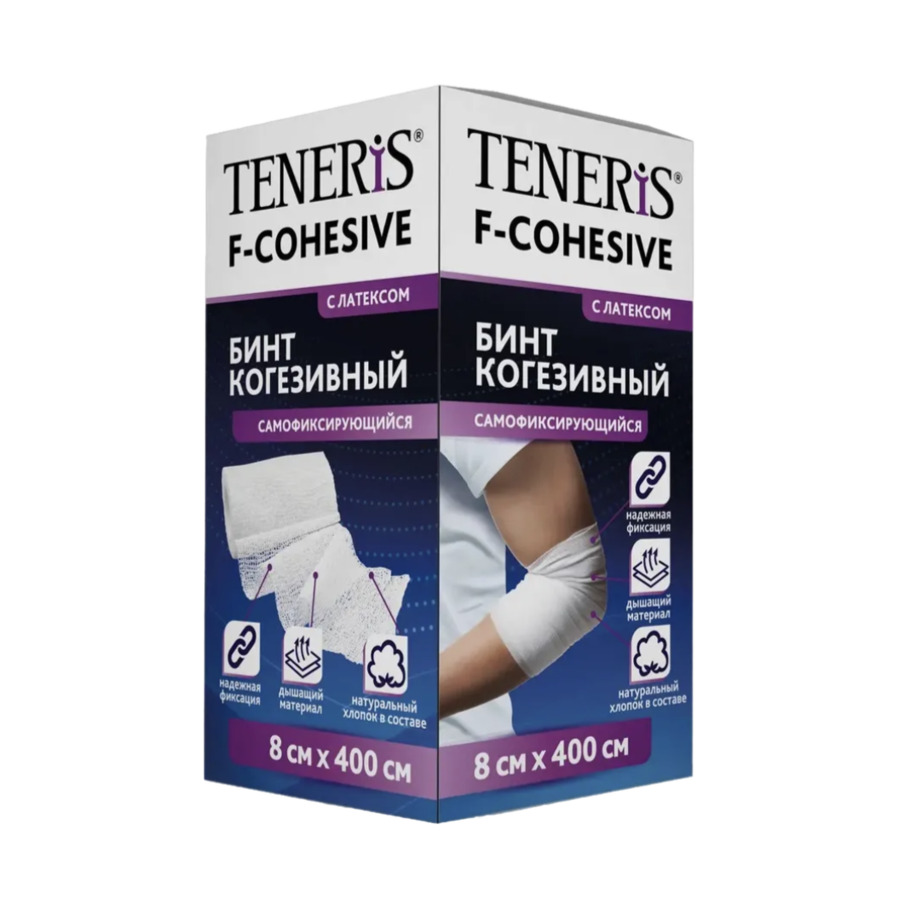 Бинт когезивный на тканевой основе самофиксирующий, 8*400 см Teneris F-cohesive