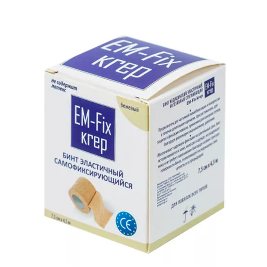 Бинт медицинский эластичный когезивный стягивающий самофиксирущий EM-Fix Krep бежевый 10см*4,5м