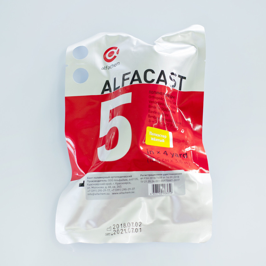 Бинт нестерильный ортопедический полимерный ALFACAST 12,5 см х 3,6 м цвет белый,