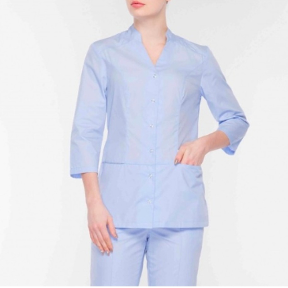 • Блуза женская, полуприлегающего силуэта, с центральной бортовой застежкой на металлические кнопки, разрезами в боковых швах.