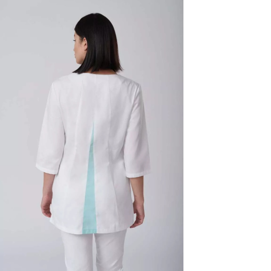 • В области горловины — вставка из ткани нежного пастельного цвета.