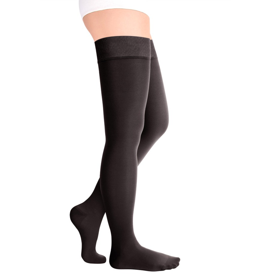 • резинка на силиконовой основе, в том числе на широкое бедро, мягко фиксирует чулок , не нарушая кровотока