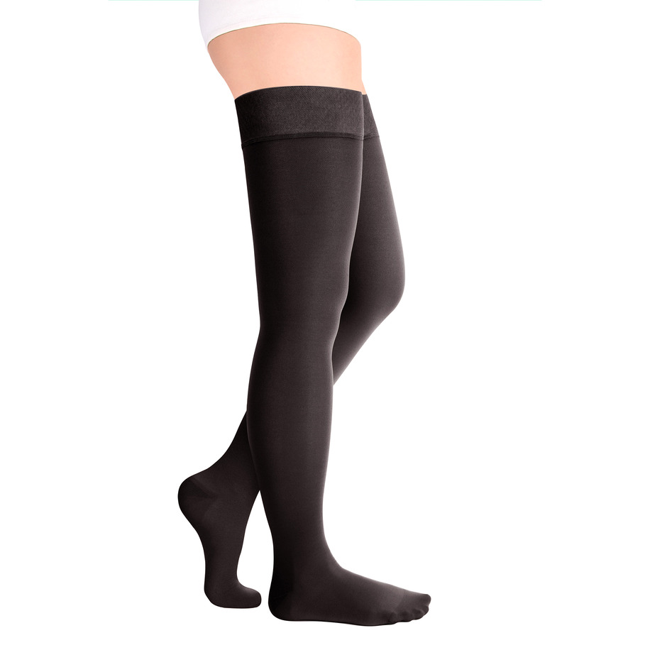 резинка на силиконовой основе, в том числе на широкое бедро, мягко фиксирует чулок , не нарушая кровотока
