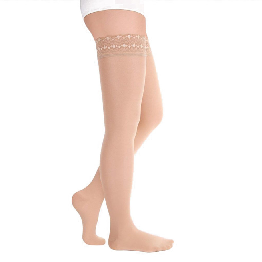 резинка на силиконовой основе, в том числе на широкое бедро, мягко фиксирует чулок , не нарушая кровотока