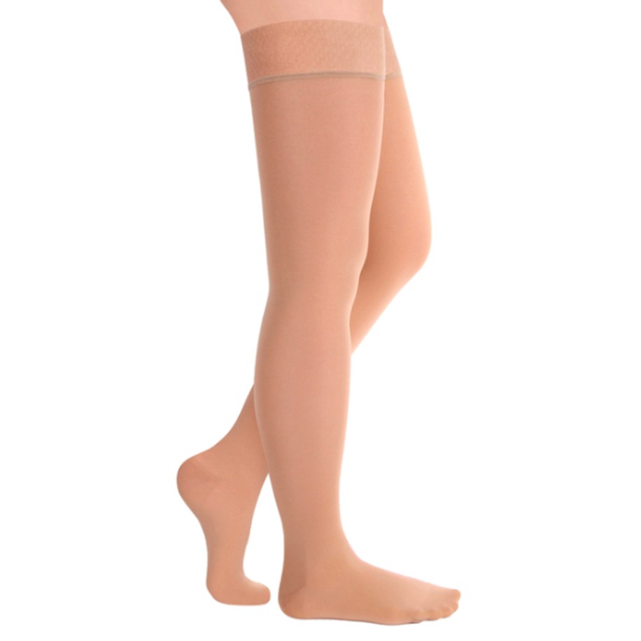 • резинка на силиконовой основе, в том числе на широкое бедро, мягко фиксирует чулок , не нарушая кровотока