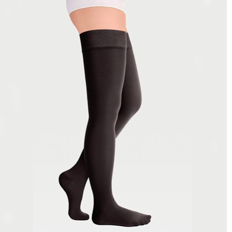 • резинка на силиконовой основе, в том числе на широкое бедро, мягко фиксирует чулок , не нарушая кровотока