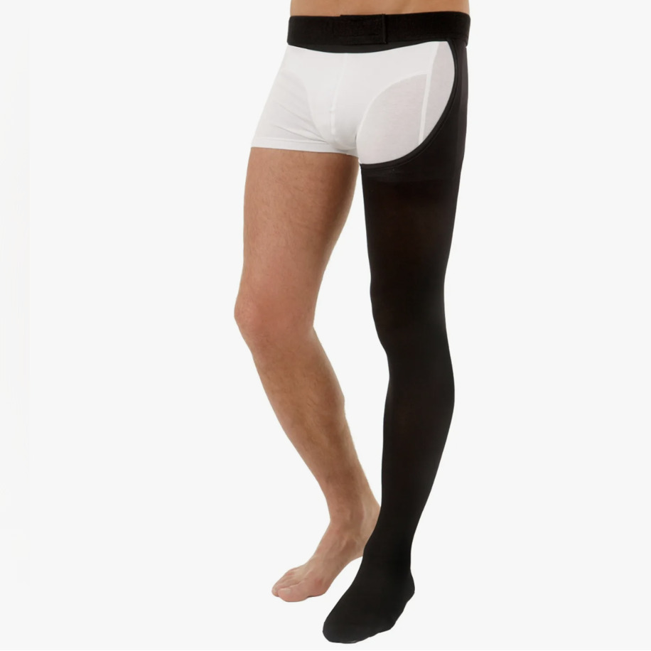 При необходимости лечения варикозной болезни с поражением обеих конечностей у мужчин возможно ношение изделий в паре, используя для фиксации пояс, который идет в комплекте к каждому изделию.
