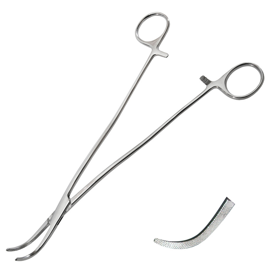Диссектор с изогнутыми ручками, с кремальерой, № 2, 210 мм. Хирургический инструмент в виде зажима, предназначенный для тупого разделения тканей при их препаровке и выделении трубчатых органов, а также для временного пережатия кровеносных сосудов, протоков и захвата лигатур при хирургических вмешательствах.
