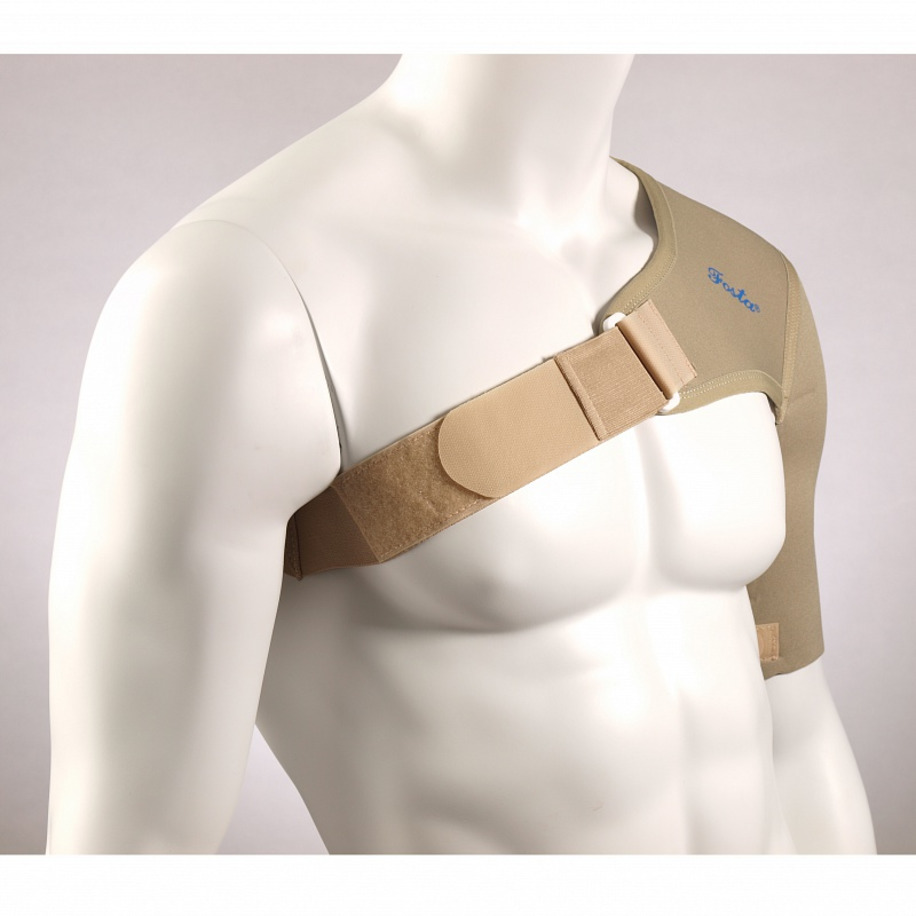 Бандаж Fosta F3601 для левого плеча легко надевается на конечность, умеренно фиксирует плечевой сустав, лопатку.