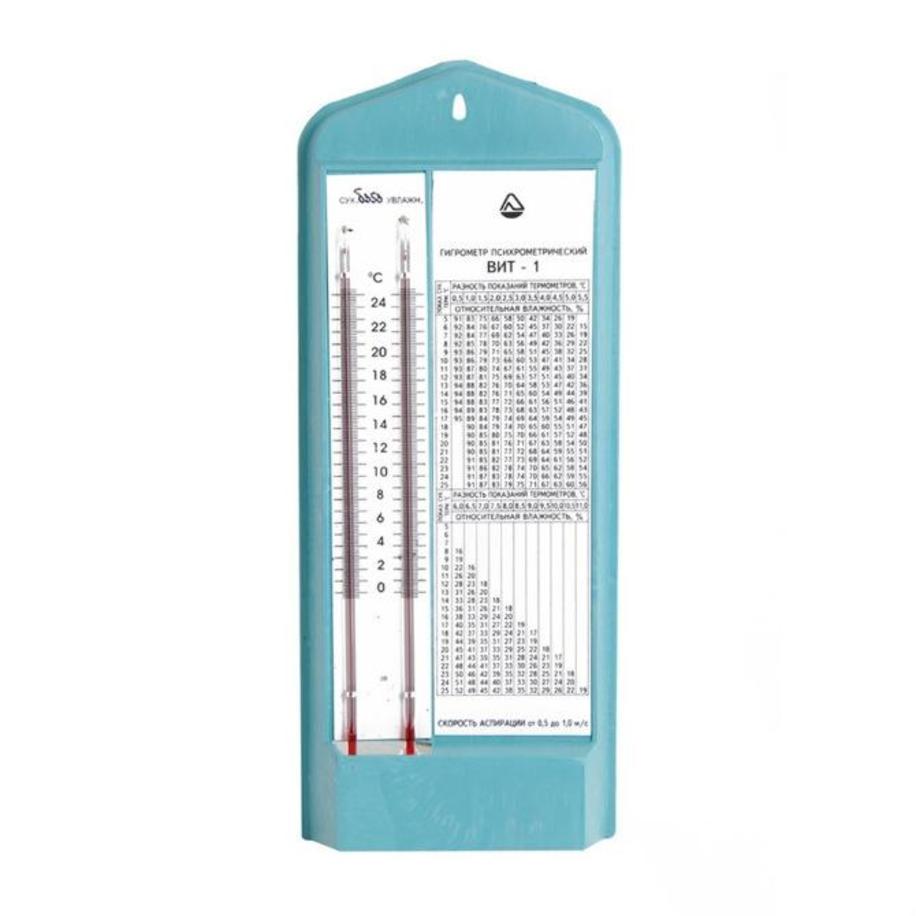 Принцип работы гигрометра психрометрического ВИТ-1 — в устройстве предусмотрено два термометра, на основании показаний которых рассчитывается разница. Один из них является сухим, а второй — влажным.