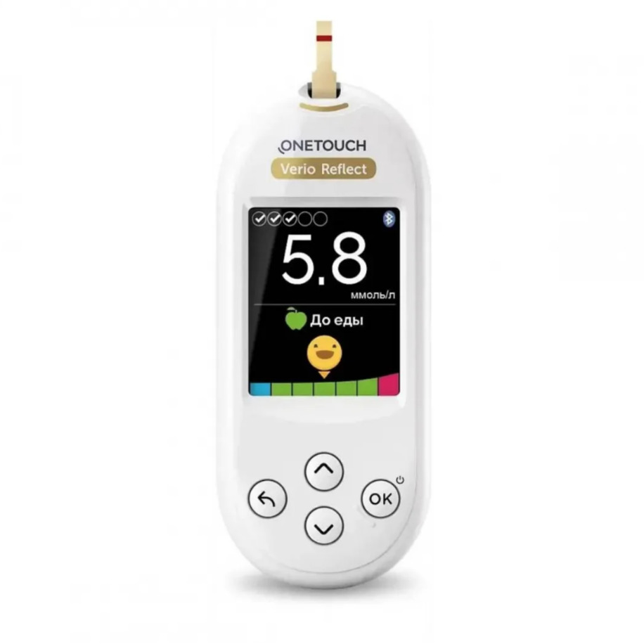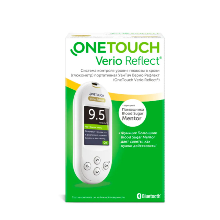 Система контроля уровня глюкозы в крови (глюкометр) портативная OneTouch Verio Reflect (Уан Тач Верио Рефлект) предназначена для количественного измерения уровня глюкозы (сахара) в образцах свежей цельной капиллярной крови, взятой из кончика пальца.