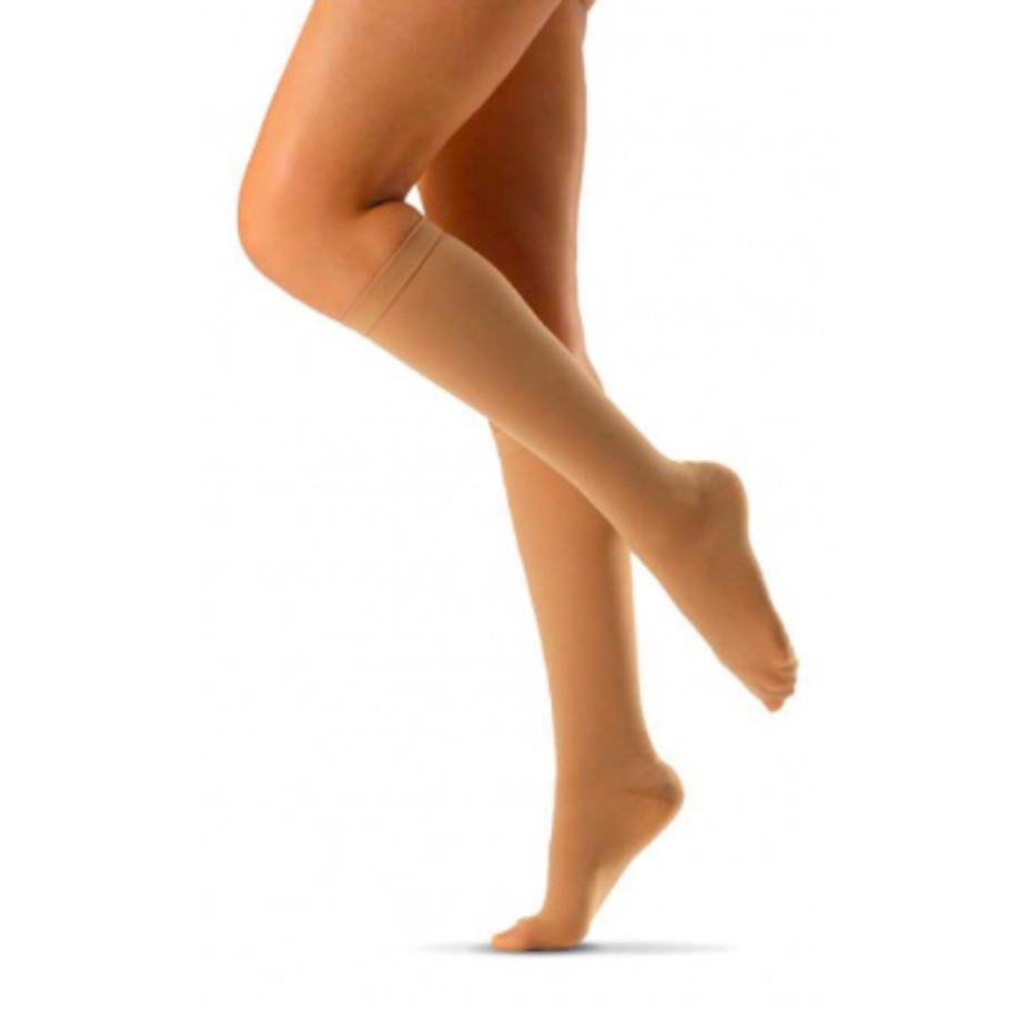 Женские гольфы с закрытым носком применяются для уменьшения отеков, болей, тяжести в ногах и развития варикозного расширения вен.
