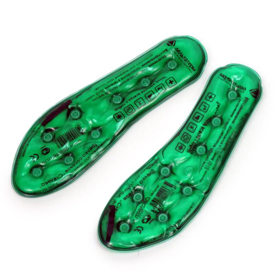 Солевая грелка «Стельки» используются для согревания стоп при простуде и болях в ногах. Можно вложить стельки в шерстяные носки или просто поставить на них ноги, сидя вечером у телевизора.