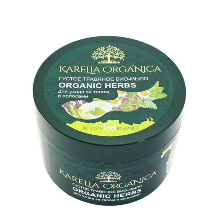 Густое травяное био-мыло «Organic Herbs» изготовлено на основе органического сока карельской березы и целебных настоев диких карельских трав.