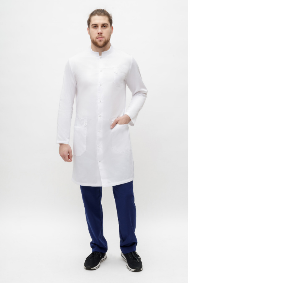• Халат мужской, прямого силуэта, с застежкой по борту на восемь сорочечных кнопок, с разрезами в боковых швах.