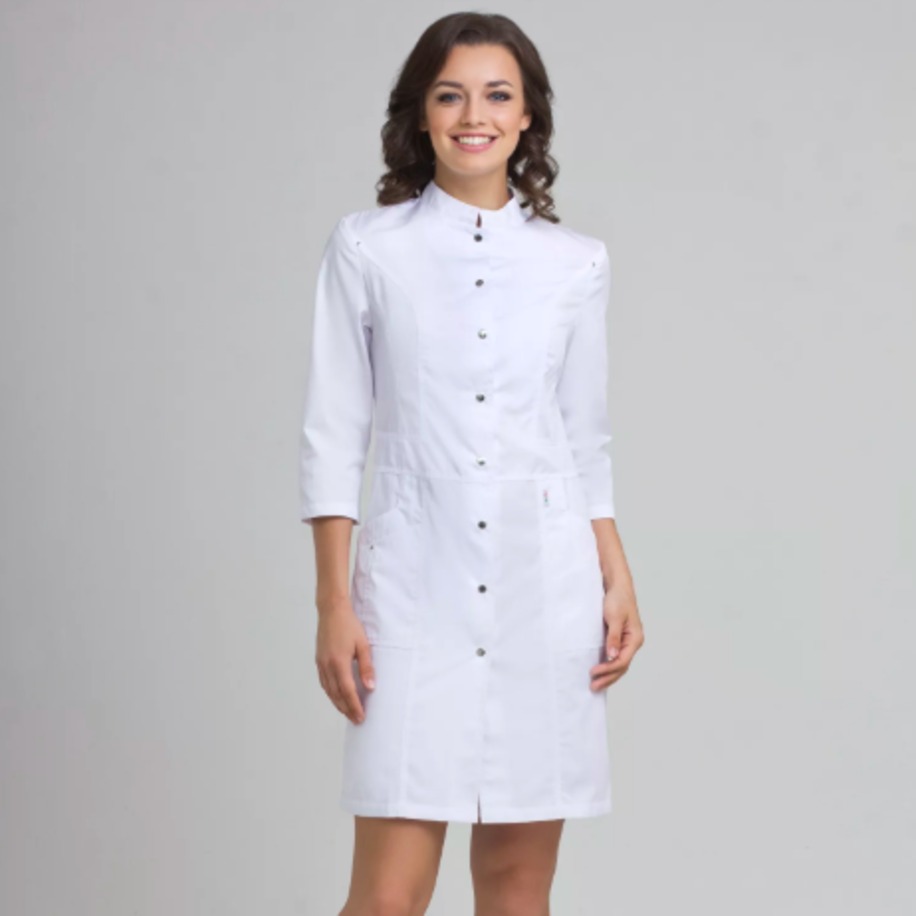 • Халат с полуприлегающим силуэтом с разрезами в боковых швах.