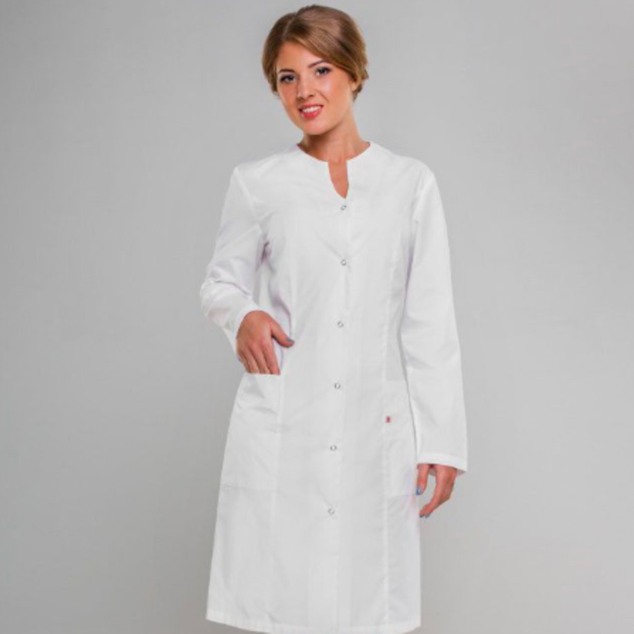 • Халат медицинский женский укороченный, полуприлегающий силуэт.