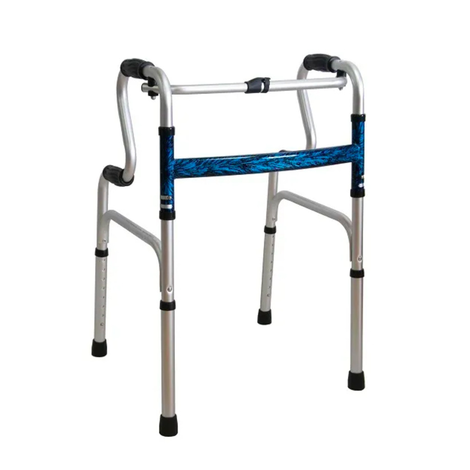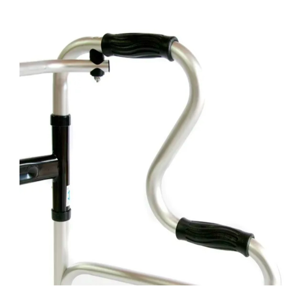 Опорные поручни ходунков выполнены из анодированного алюминия и не подвергаются коррозии, соединяющая рама — из стали с полимерным покрытием.