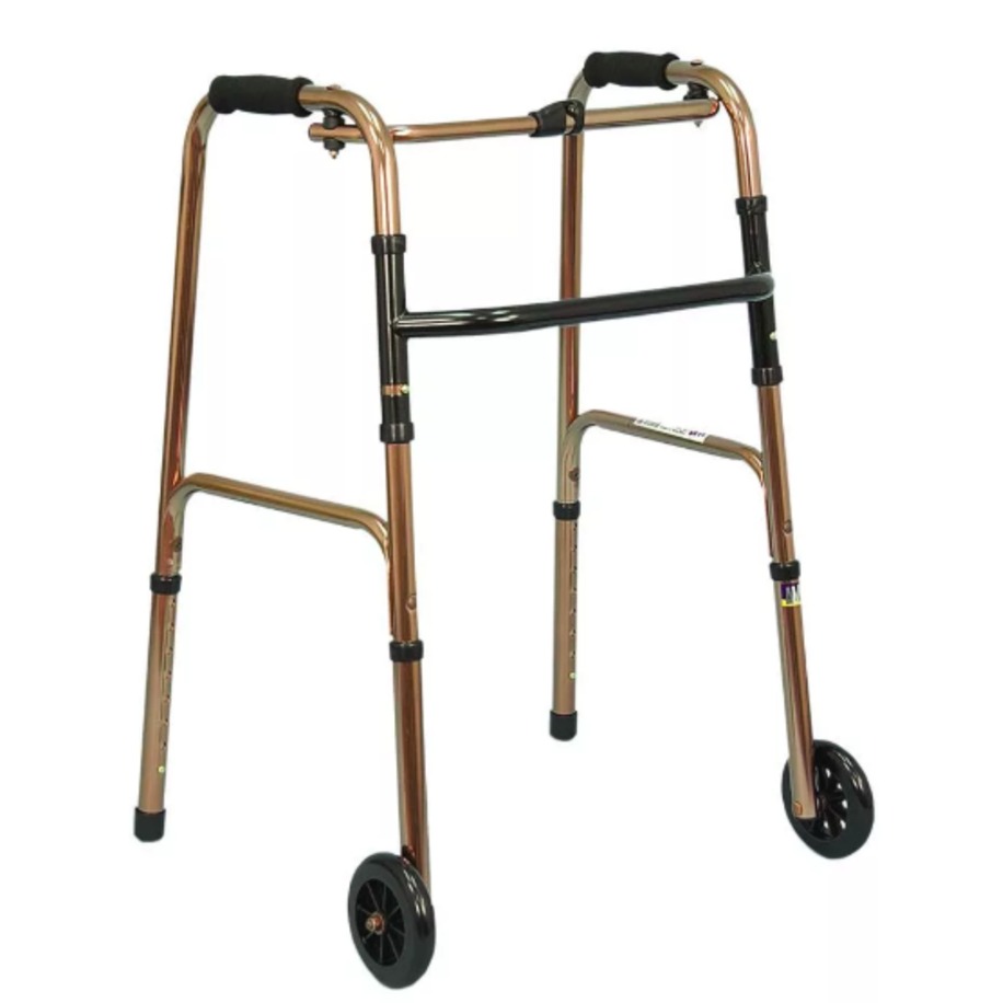 Оснащены литыми колесами спереди, которые позволяют катить ходунки перед собой, когда это необходимо.