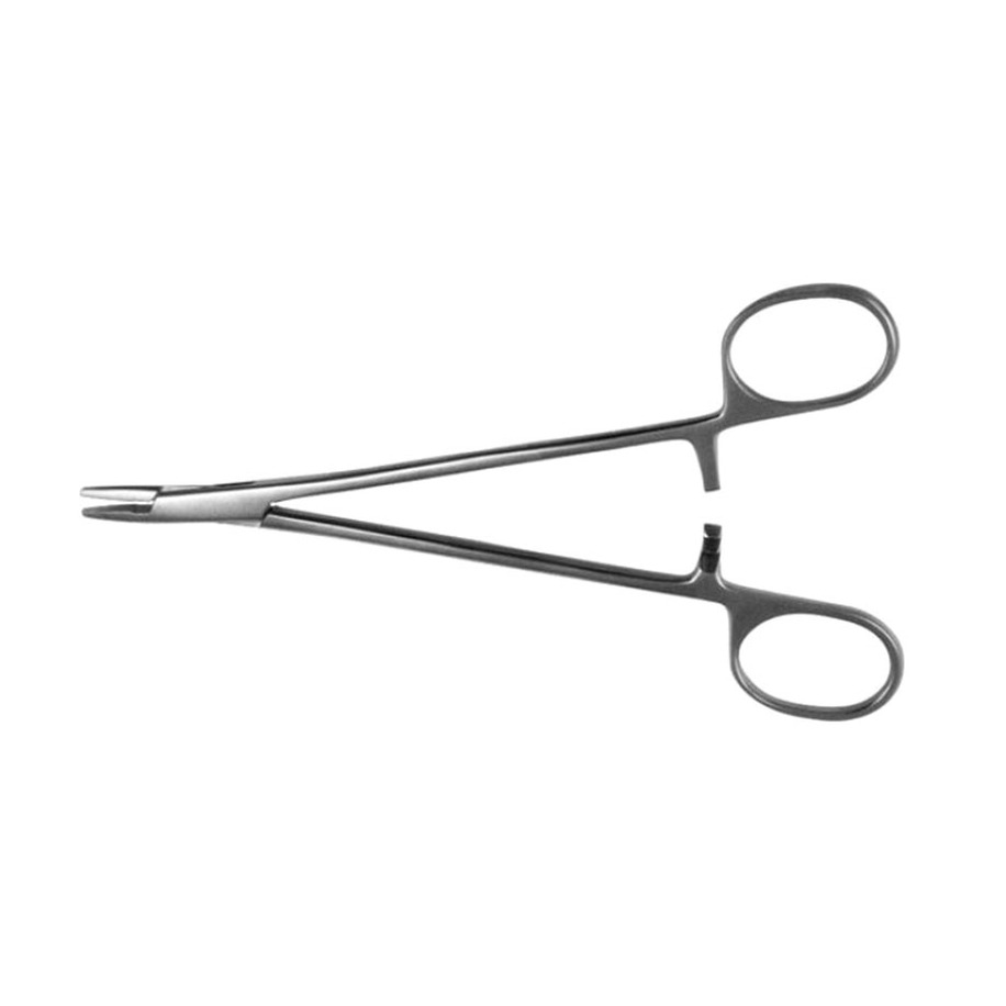 Инструмент предназначен для удержания и проведения через ткани хирургических игл при наложении шва.