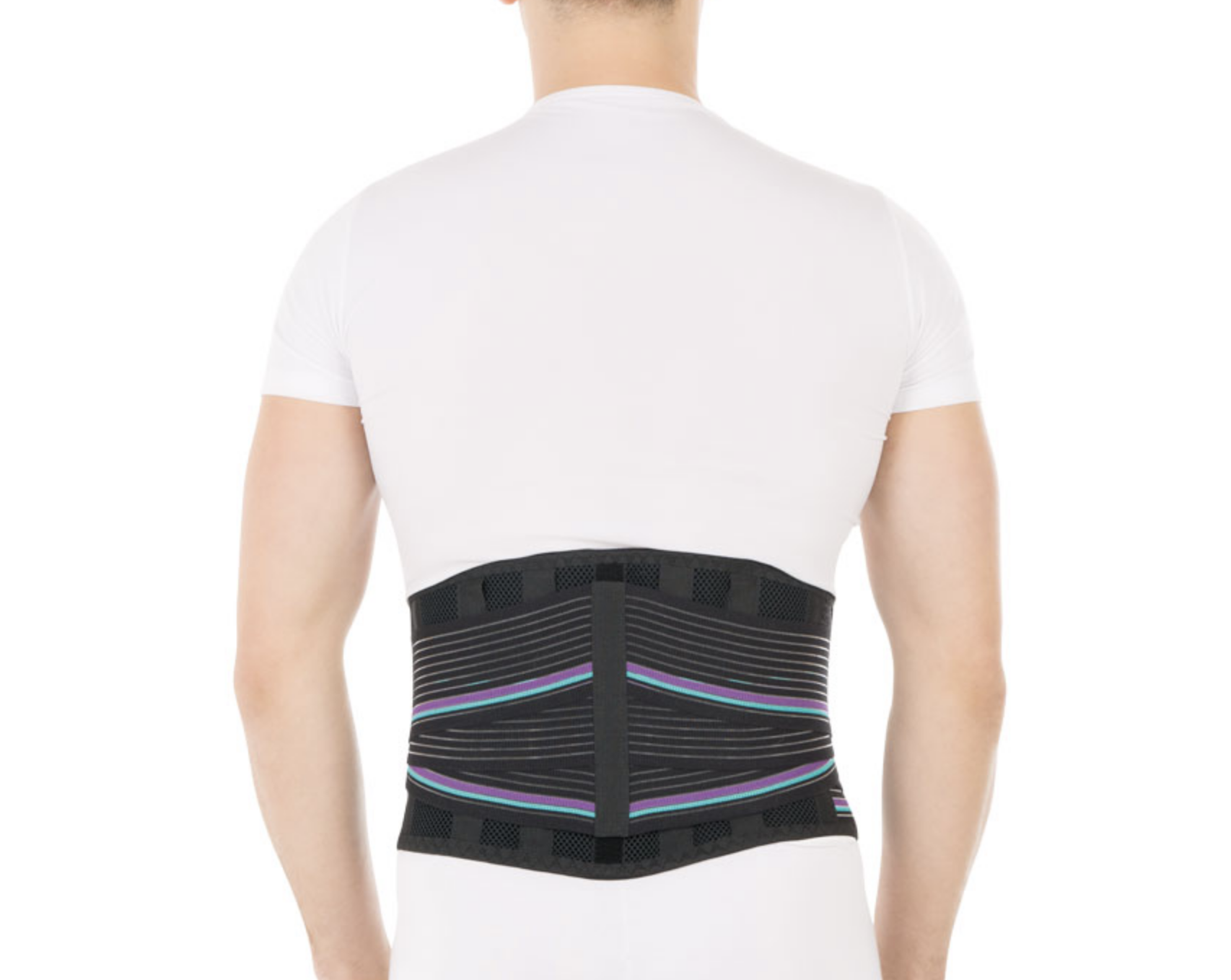 в корсете установлены 4 моделируемых ребра жесткости, используемых в острой фазе заболевания и обеспечивающих сильную фиксацию пояснично-крестцового отдела позвоночника