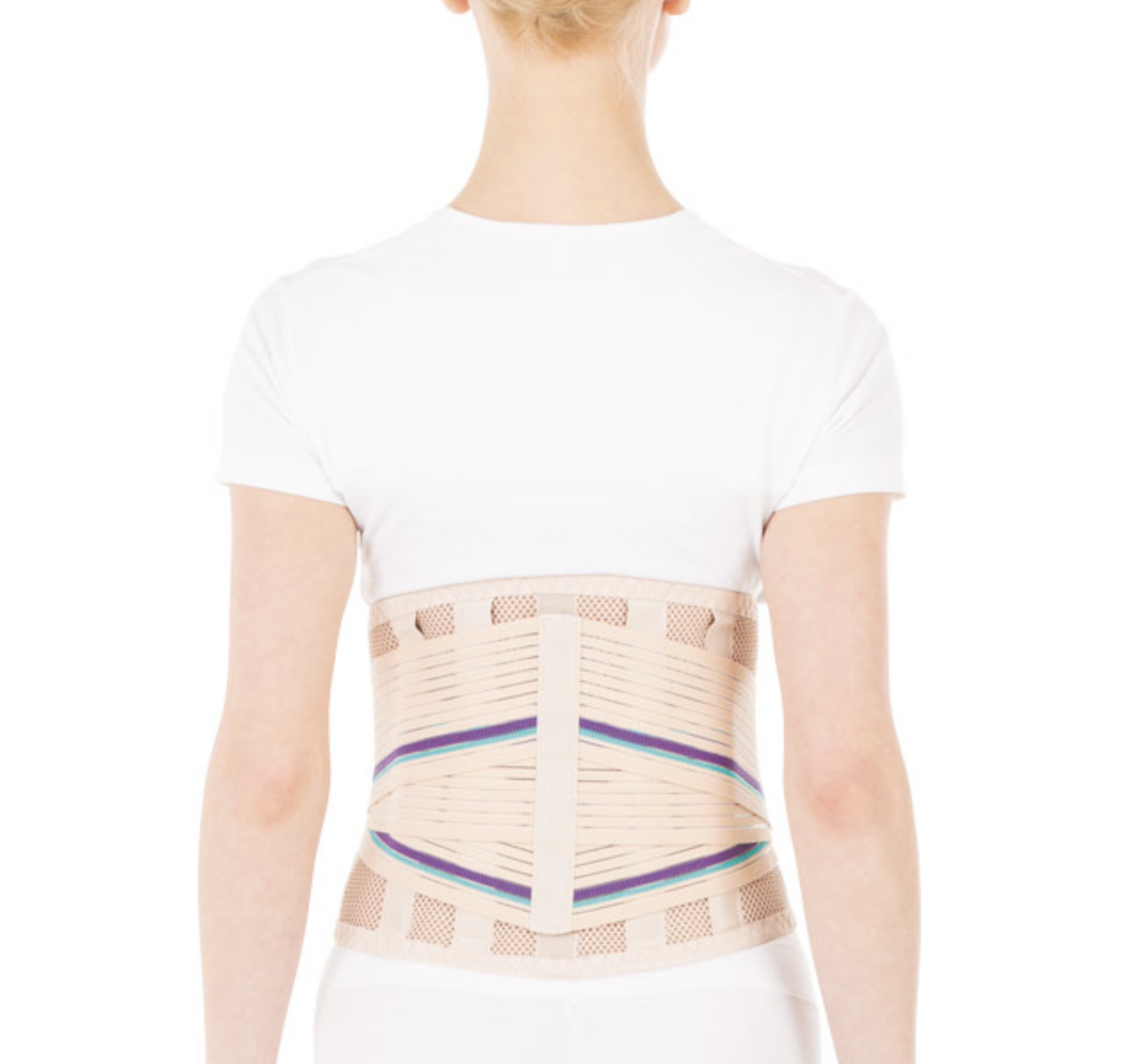 в корсете установлены 4 моделируемых ребра жесткости, используемых в острой фазе заболевания и обеспечивающих сильную фиксацию пояснично-крестцового отдела позвоночника