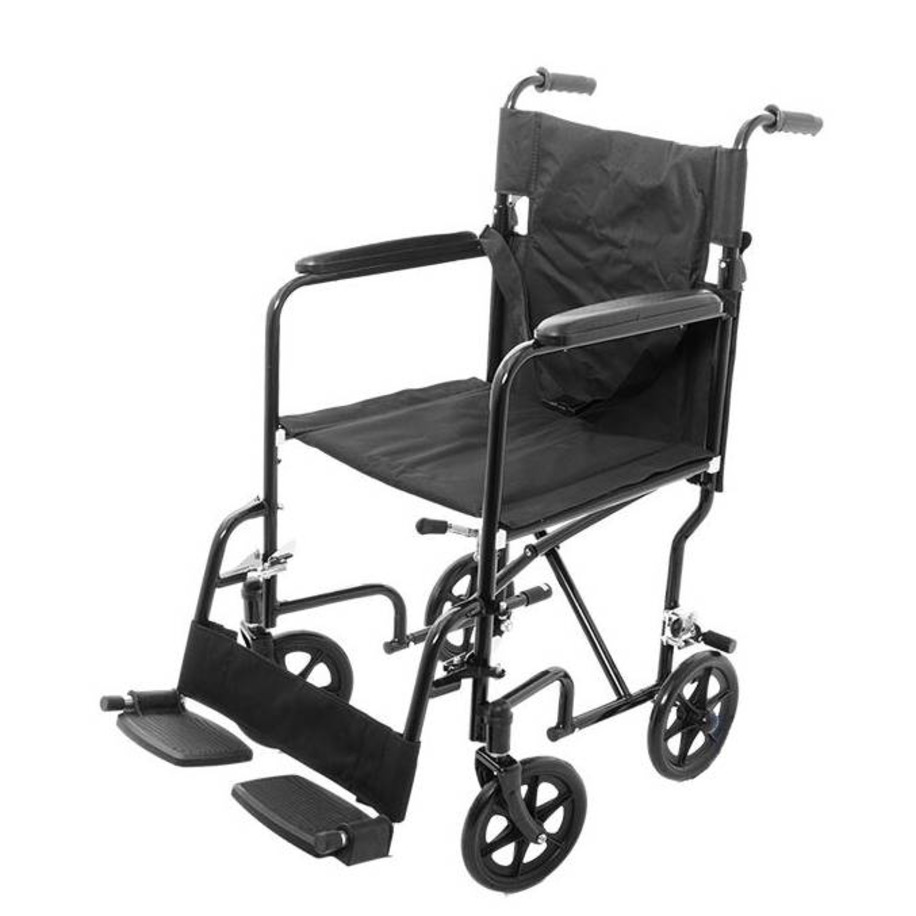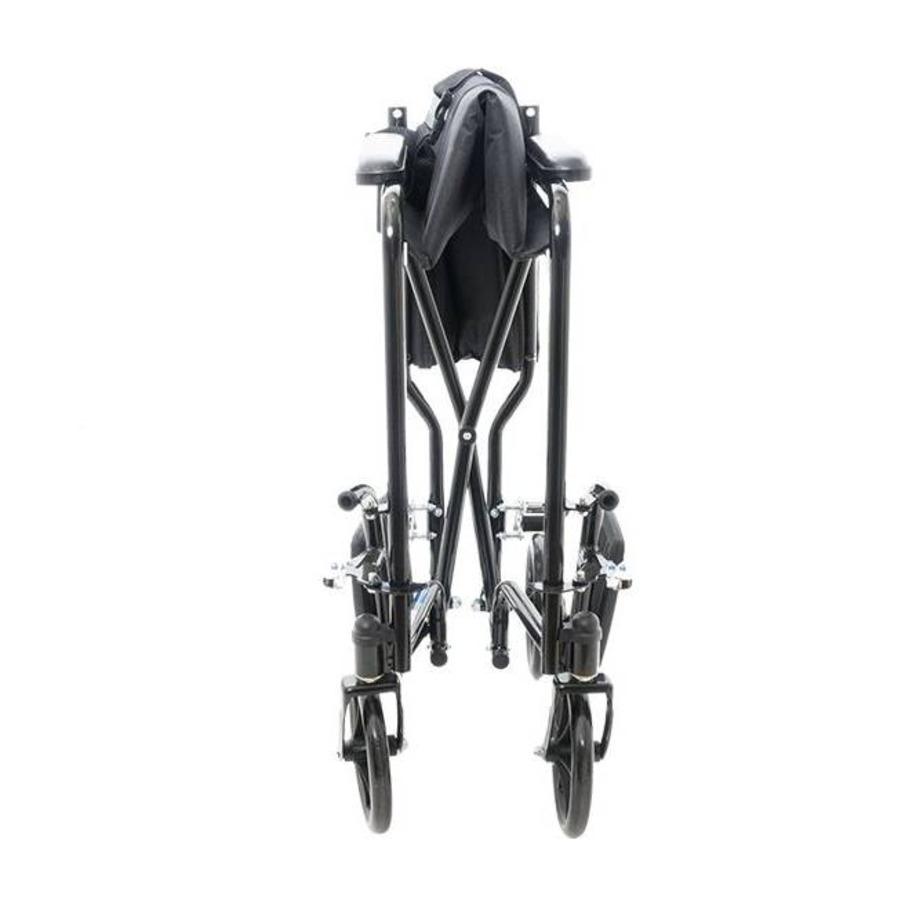 Складное кресло-каталка со складной спинкой и съемными подножками.