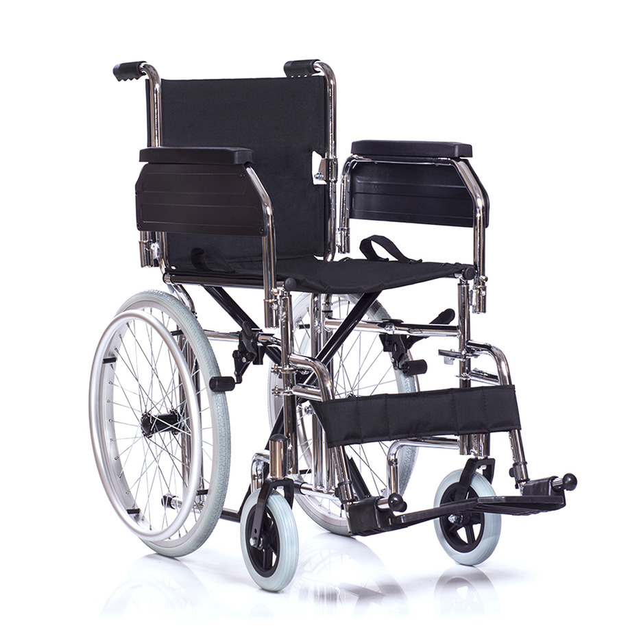 Рама кресло-коляски изготовлена из высокопрочных конструкционных материалов и имеет складную конструкцию. Коляска складывается без применения инструмента.