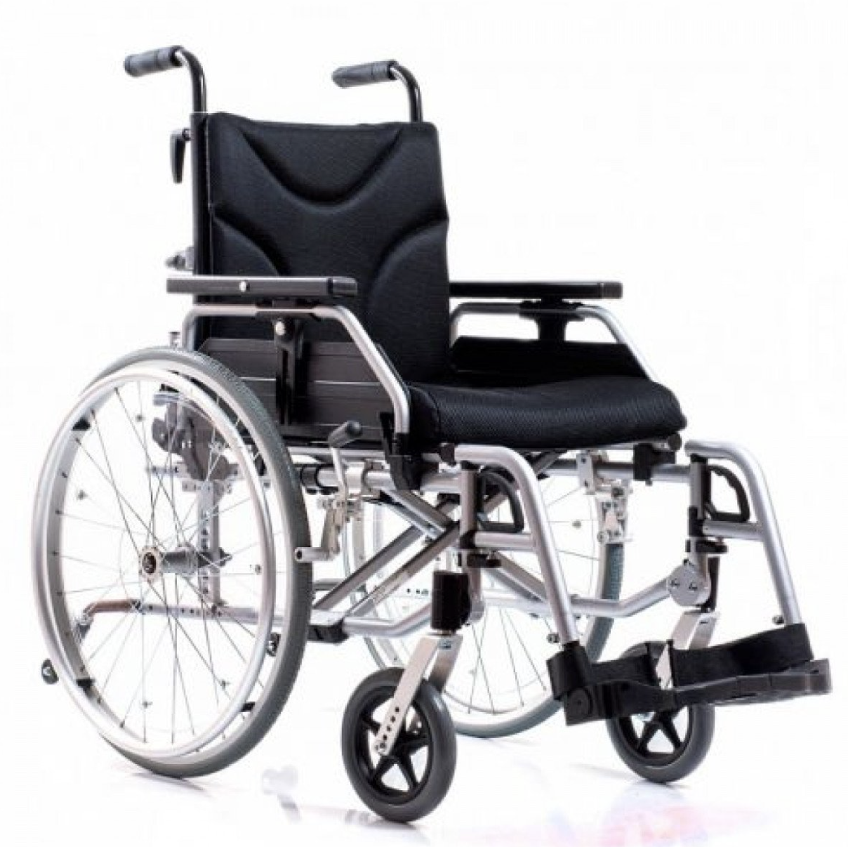 Инвалидное кресло со складной рамой и возможностью индивидуальной регулировки ремней спинки.