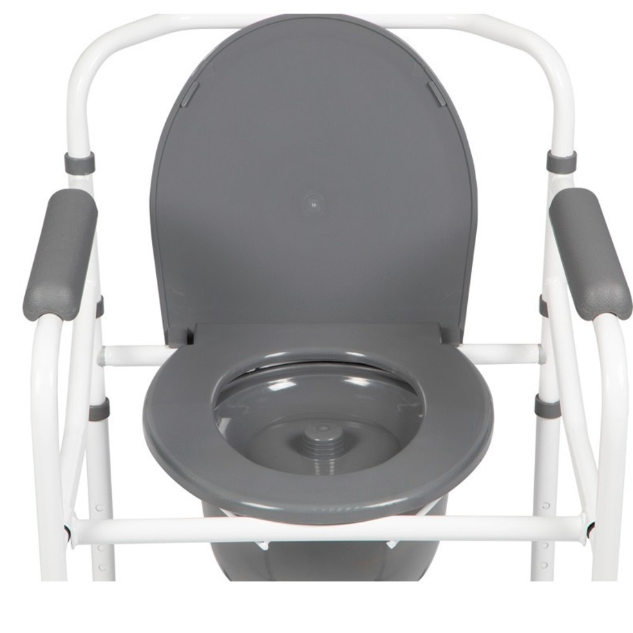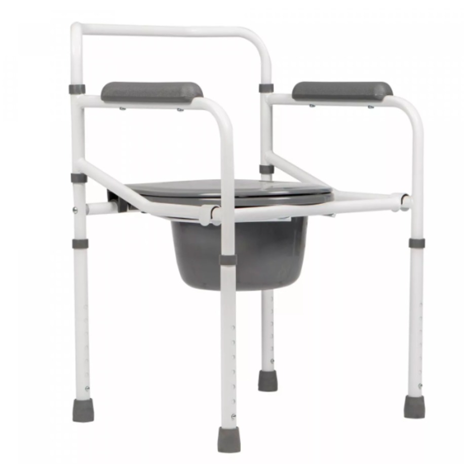 Кресло-туалет оснащено съемным санитарным устройством, выполненным из пластика.