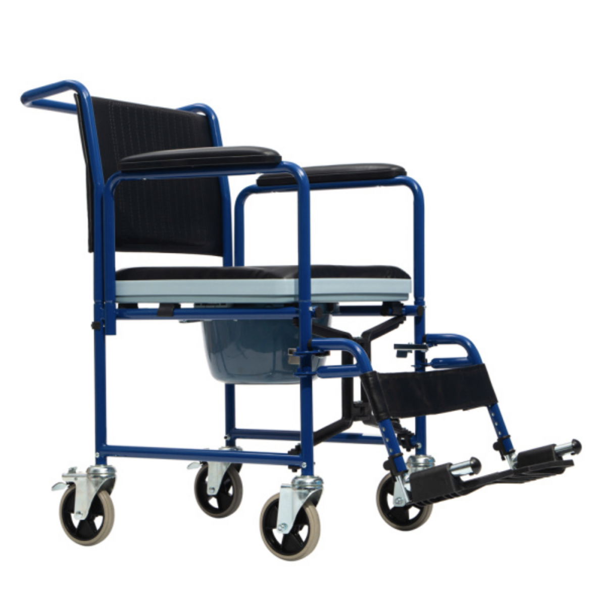 Оснащено цельнолитыми колесами, что облегчает перемещение стула для сопровождающего.