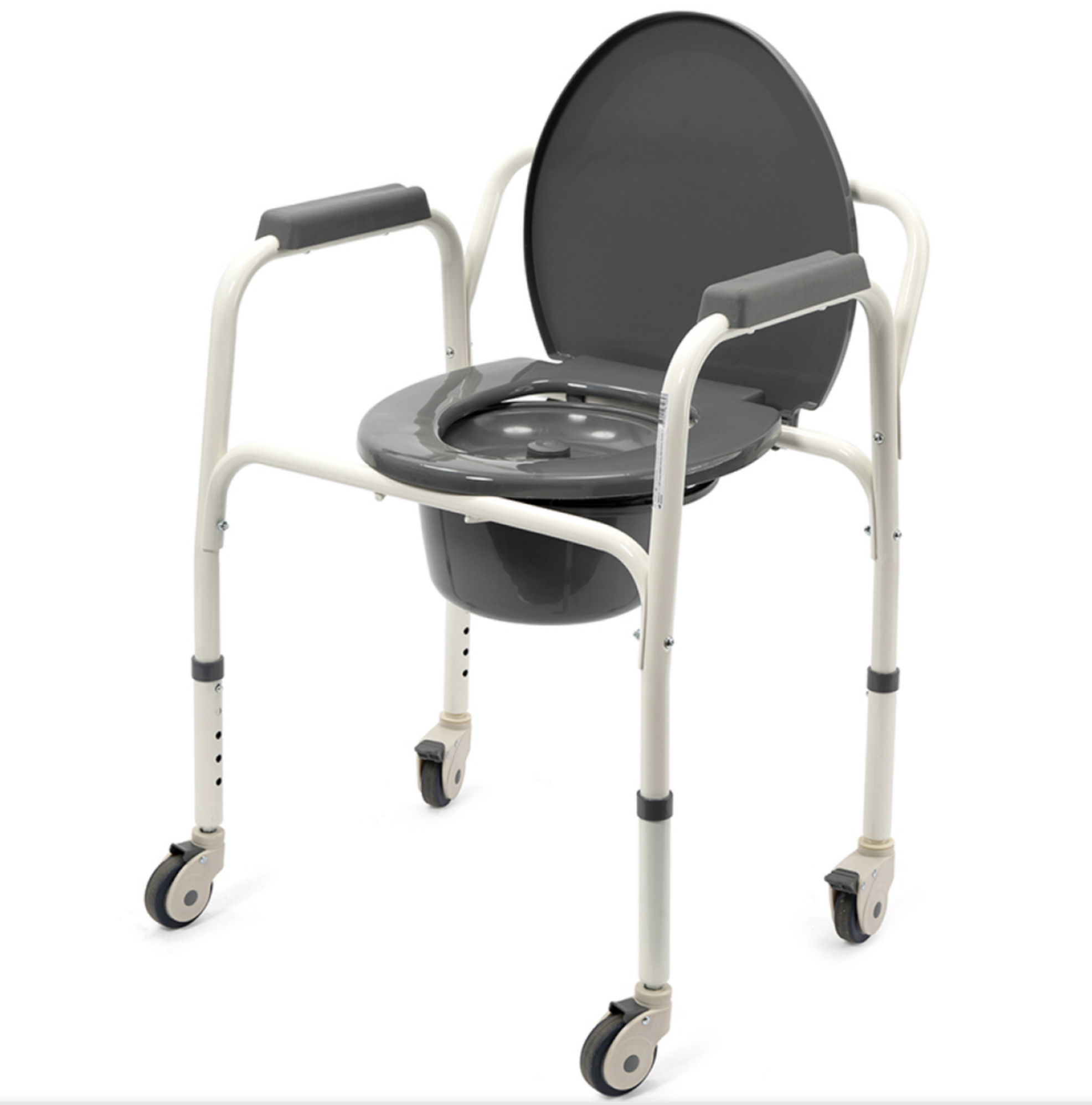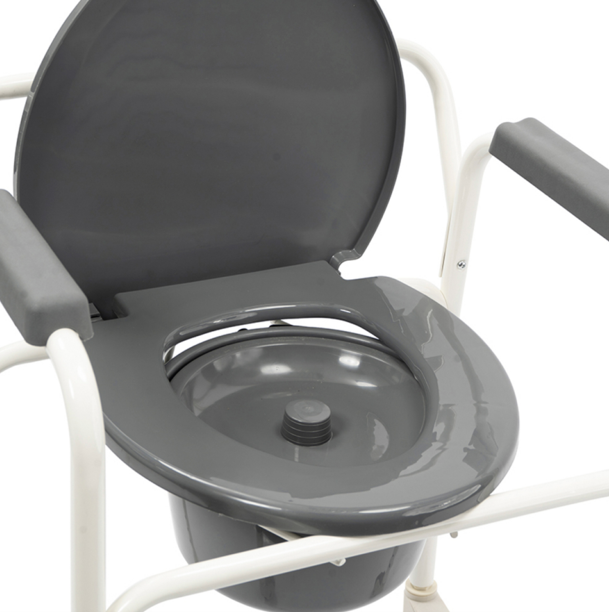 Кресло-туалет Barry WC101 имеет стальную конструкцию, оснащен съемным ведром с крышкой и пластиковыми подлокотниками.