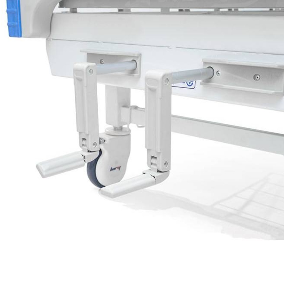Мягкий ход кровати обеспечивают колеса — самоуправляемые и с индивидуальным тормозным механизмом. Колеса фиксируются в любом необходимом положении и помогают с удобством перемещать кровать в закрытом пространстве.