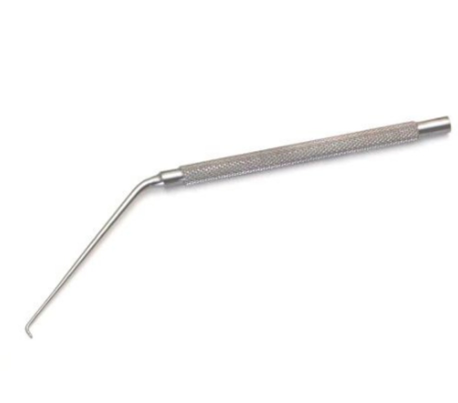 Выполнен из медицинской стали, более толстой чем крючок для носа, ручка длинная.