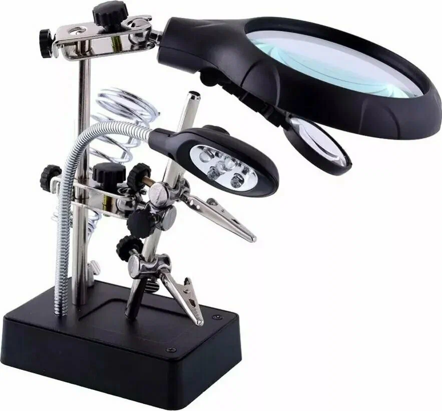Очень удобная модель, у которой есть удобная подставка, третья рука с дополнительной лупой, Kromatech MG16129-С станет отличным выбором для профессиональной деятельности и домашнего хобби.