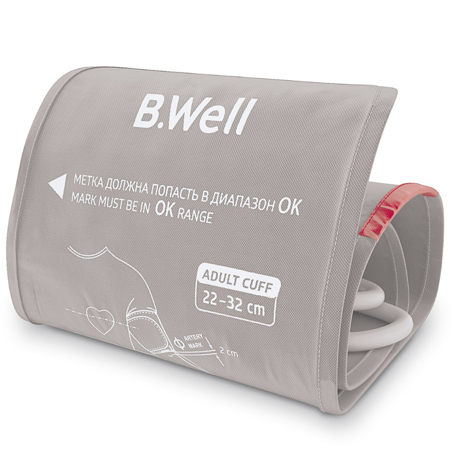 • Подходит для электронных тонометров B.Well, измеряющих давление на плече: тонометров линии PRO (PRO-30, PRO-33, PRO-35, PRO-36), линии MED (MED-53, MED-55), а также тонометров серии WA (WA-22H, WA-33, WA-55, WA-77) и модели A-23.