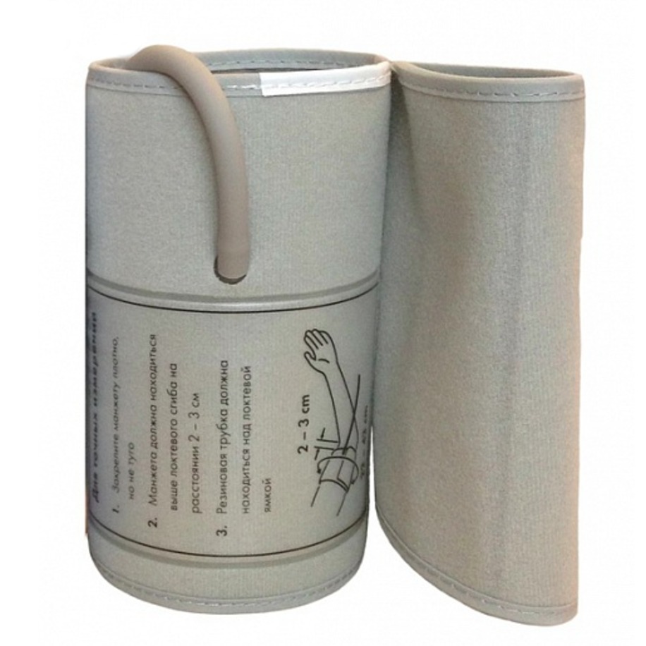• Состоит манжета из пвх-камеры, нейлонового чехла и трубки для подключения к тонометру.