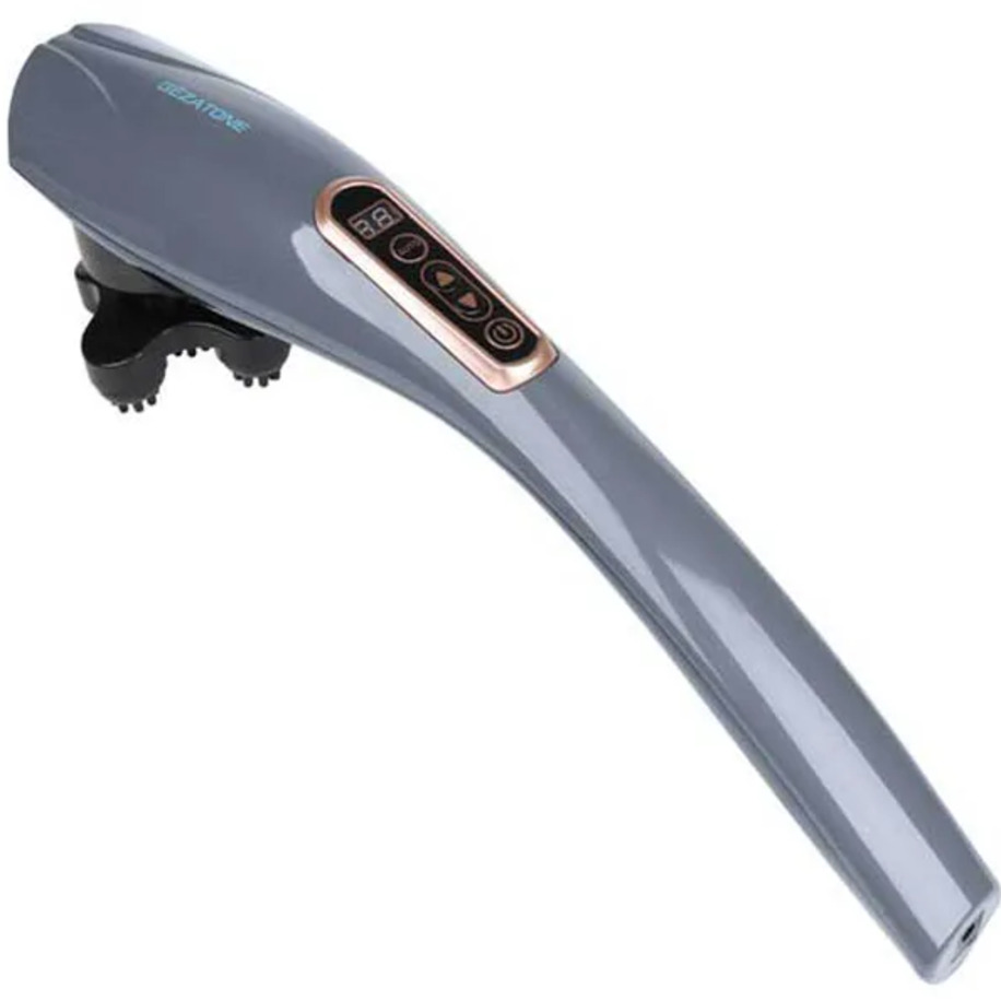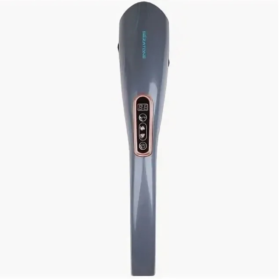 Прибор для вибромассажа тела с 6 насадками, 12 программами, 10 уровнями интенсивности, LED дисплеем и литиевым аккумулятором.