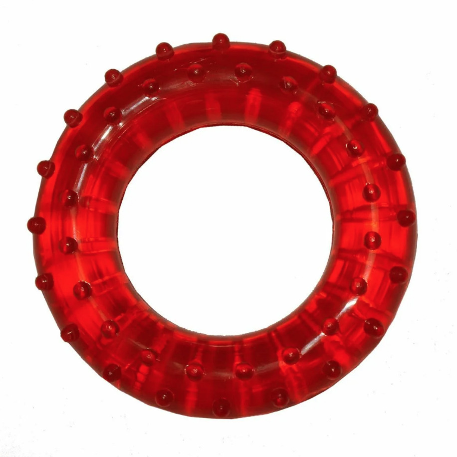 Массажер-эспандер кистевой медицинский взрослый, в форме кольца, поверхность массажного кольца покрыта рельефными бугорками.