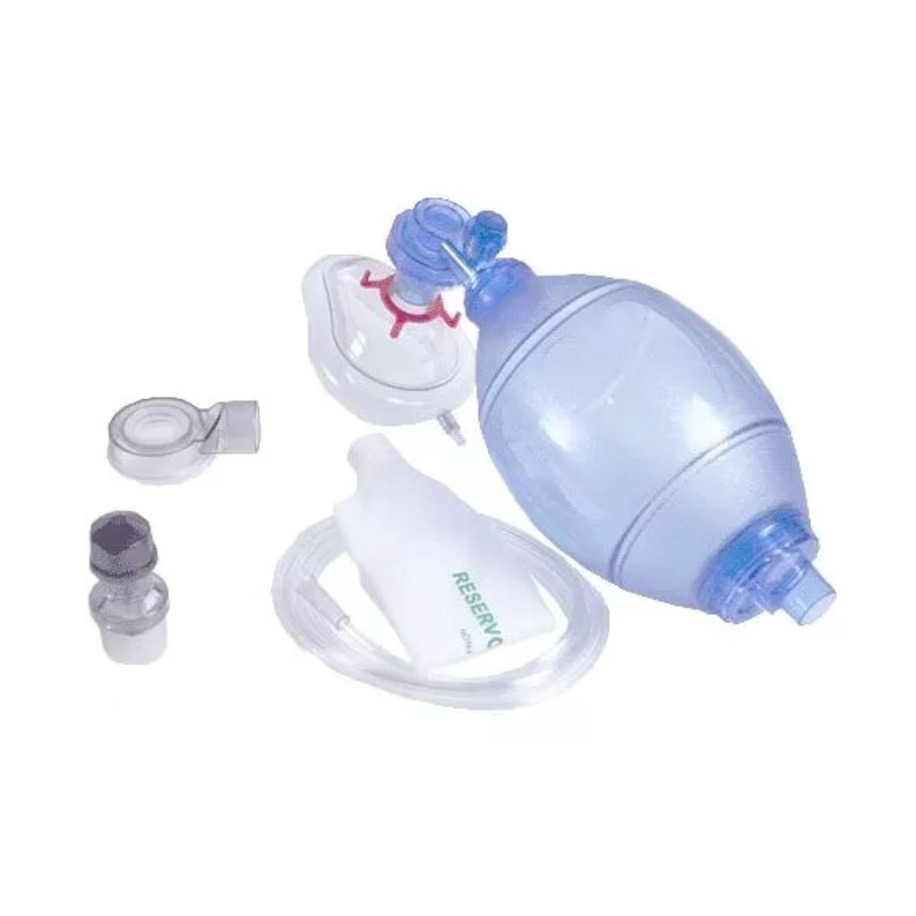 Мешок дыхательный, маска анестезиологическая (оснащена манжетой раздувной с ниппельным клапаном и соединением типа «Луер»), переходник шарнирного типа с двумя клапанами – для пациента и для ограничения давления.