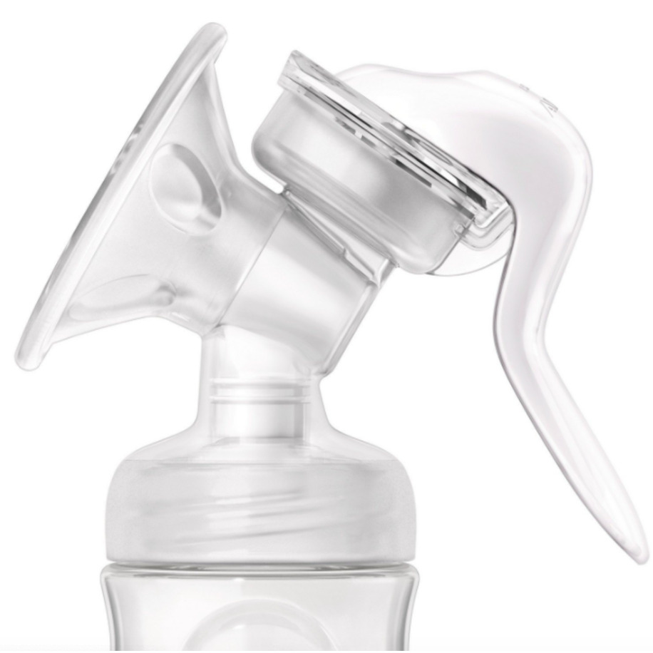 Ручной молокоотсос позволяет сцеживать молоко в удобном положении без необходимости наклоняться вперед, стимулируя приток молока при