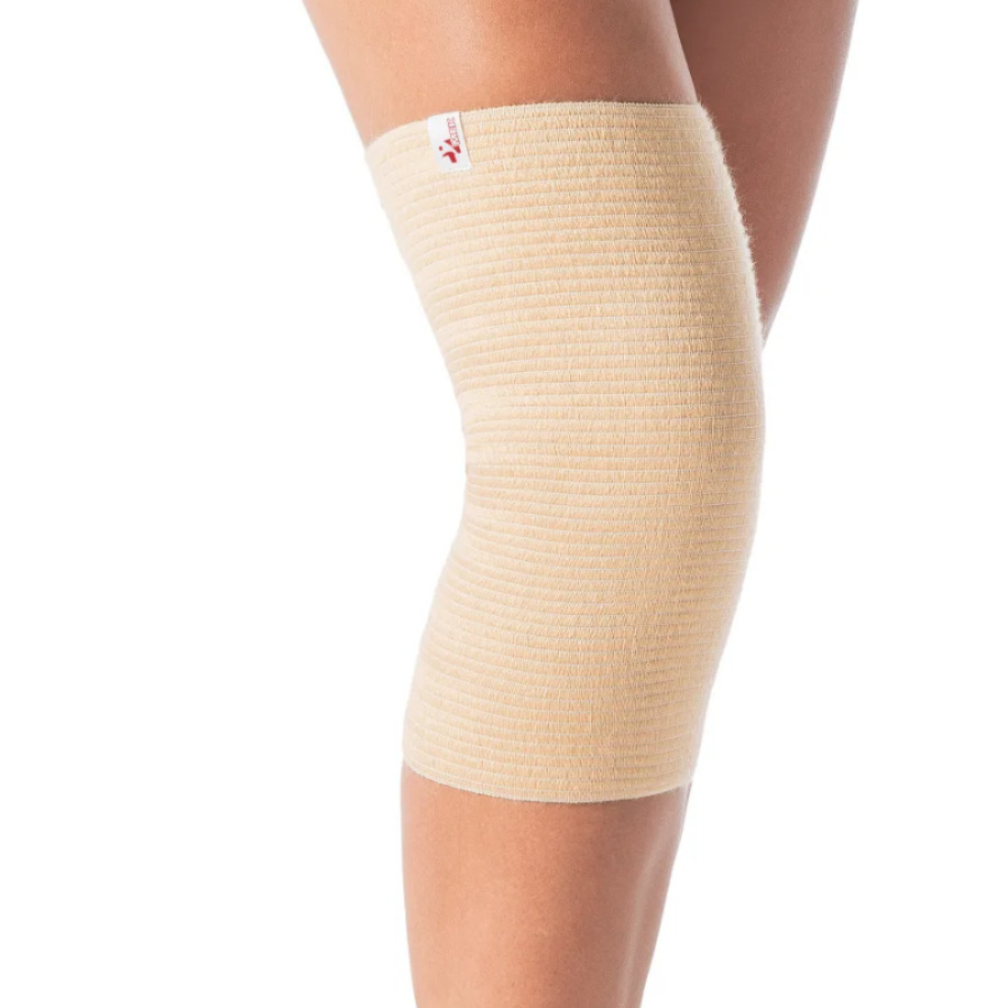 Фиксатор на коленный сустав изготовлен из современной эластичной ткани, в состав которой входит полушерсть.